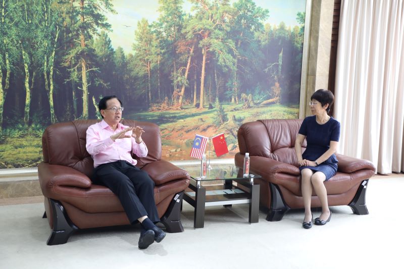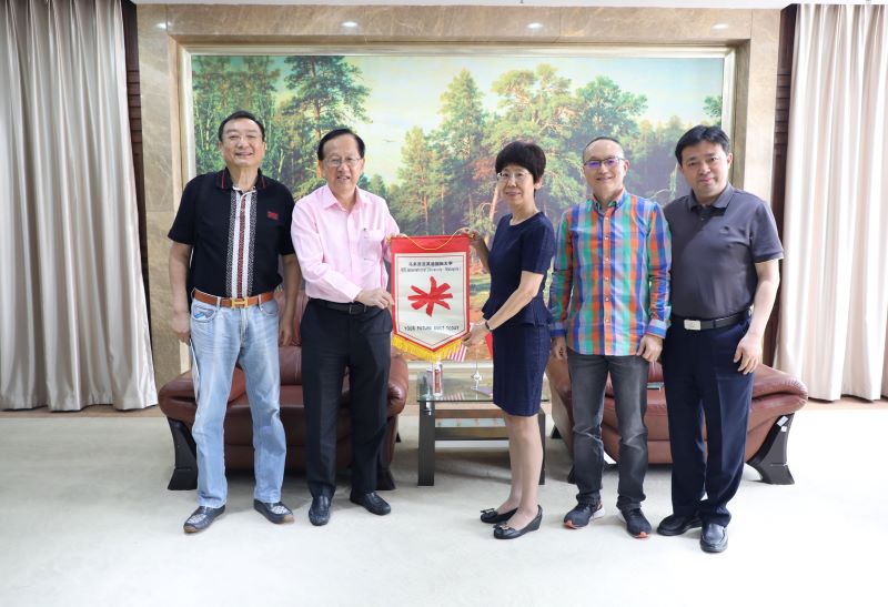 2024年5月23日,马来西亚华校董事联合会总会署理主席、英迪国际大学创始人、马来西亚中国商会会长陈友信一行访问我校,华尔康药业公司董事长王立东、上实剑桥集团董事长袁光明等陪同访问。