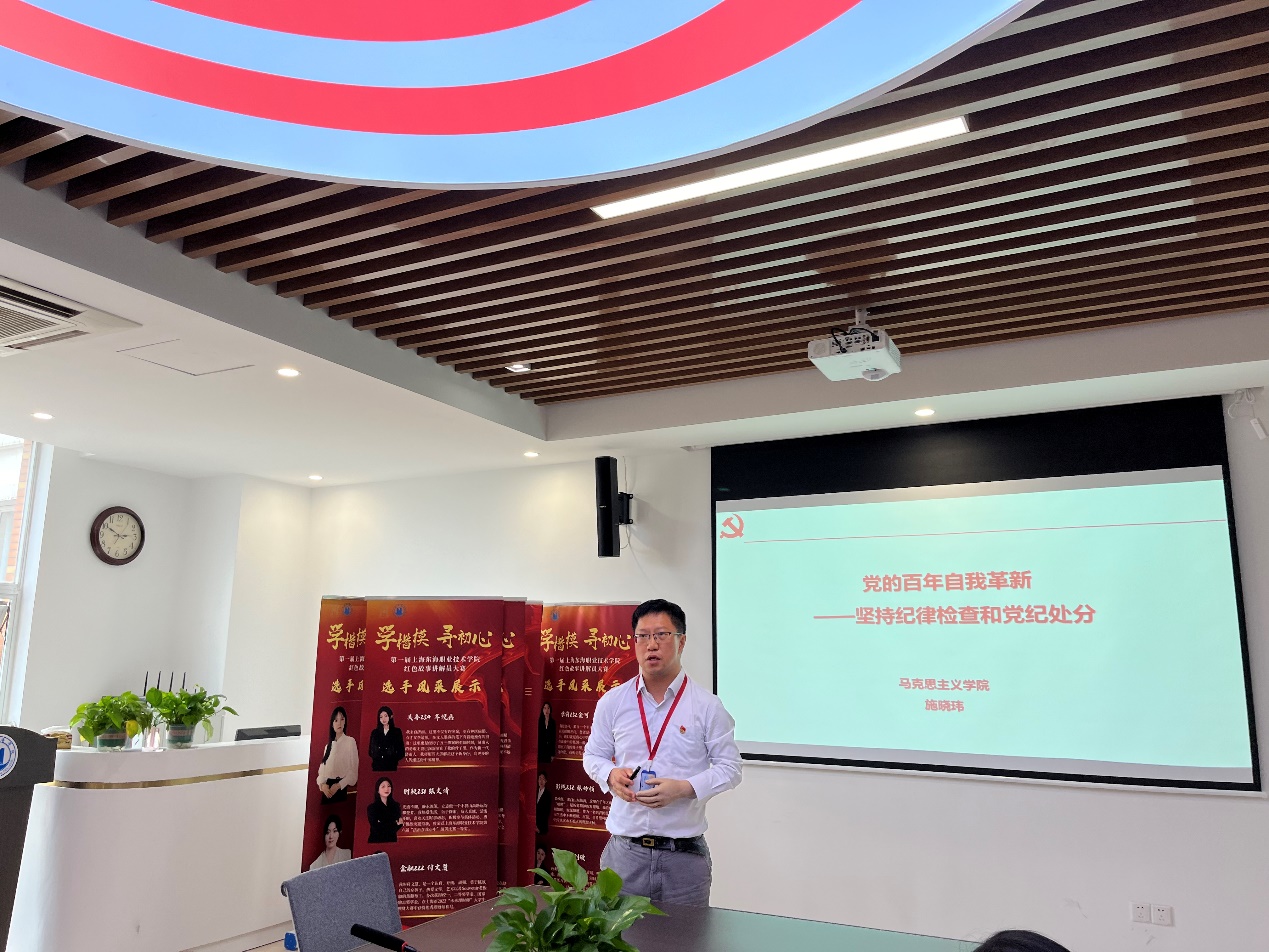 校纪委副书记、马院党支部纪检委员施晓玮跟老师们分享了从党成立以来不同历史时期违反党纪的案例,特别是十八大以来高校违纪案例,发人深省。