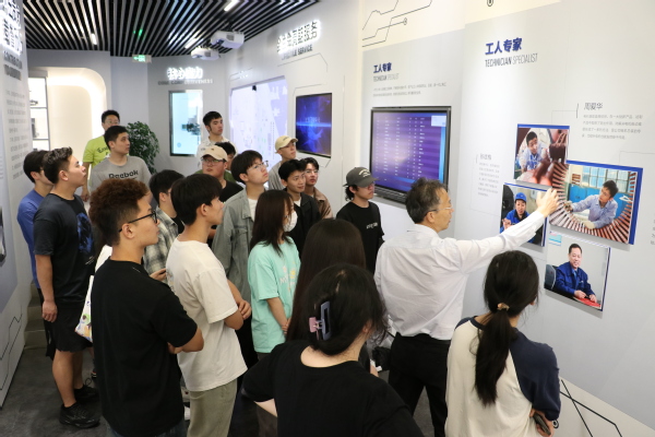 首先,同学们参观了企业展示中心、领袖关怀展板,瞻仰了毛主席铜像,深入了解了企业发展历史和企业文化,详细倾听了“首创”精神、“扁担电机”精神的故事起源和深刻内涵。随后,参观了全国最先进的线圈生产车间、罗文林数控设备加工工匠创新工作室(曾被评为2023年度上海市工匠创新工作室)等。