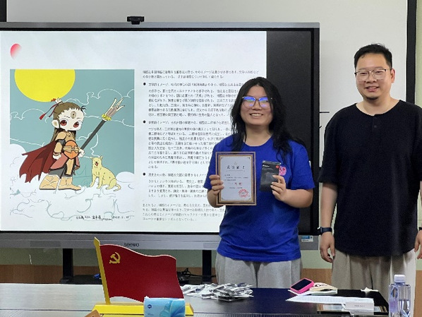 今年5月,东海传媒学院日语教研组为增强语言学习积极性,提高专业技能,营造良好的语言学习氛围,组织开展“我手绘我心,言说‘他语”的日语学习主题活动。此次活动邀请各位同学拿起画笔,描画你心中喜爱的中国动漫角色,并用日语为你心中喜爱的中国动漫角色写上一段推荐词。至活动截稿时间为止,共收到绘画作品20余件。后经过日语教研组各位老师汇同动画专业老师认真评选,最终选出了一、二、三等奖,并于6月18日为获奖同学举行了颁奖仪式。