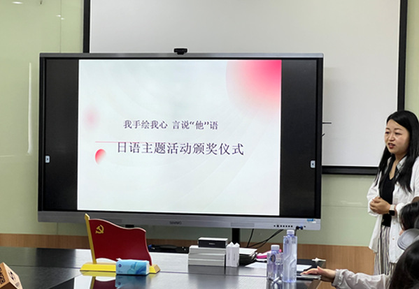 颁奖仪式由日语教研组负责人储然老师主持,院长左田田,支部书记胡雪、院办主任黄燕美、辅导员白婷、日语教师冬梅和苏申怡等共同参加。