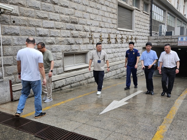 为加强本市教育系统防汛防台安全工作,提升高校防汛防台应急处置能力,6月21日上午,市教委高校防汛防台安全专项督查组一行7人来我校检查防汛防台安全工作。后勤保卫处处长黄海、副处长刘强陪同检查。