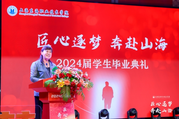 党委书记曹蓉蓉宣读上海市优秀毕业生、东海学院优秀毕业生表彰决定。校长贺瑛在毕业典礼上发表讲话,面对即将踏上新征途的毕业生们,她叮嘱大家奋力回答好“强国建设、教育何为”的时代答卷,并谨记三点:第一,牢记东海精神。以终身东海人的意识,铭记东海生涯与时光,赋能未来的万里征程。第二,传承东海校训。不断学习,提高自我,消除“内耗”,用实力去应对未来的挑战。第三,勇担时代重任。以“小我”的担当书写“大我”的境界,在各领域各方面都要勇当排头兵。希望同学们在新征程开疆拓土,在新赛道向新而行,支持新质生产力,做敢想敢为、善作善成的时代新人!