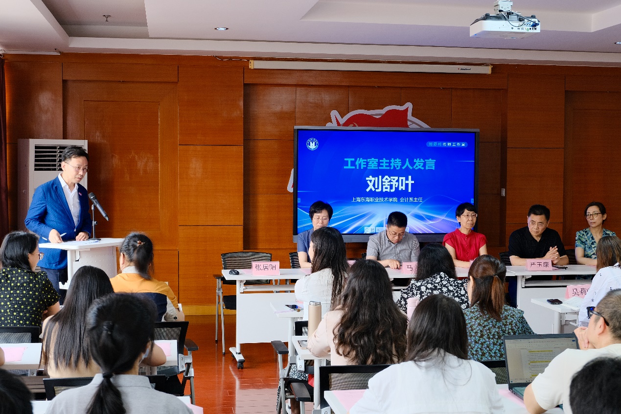 刘舒叶作为工作室主持人发言。她用“感谢”“责任”和“行动”三个词展开发言,介绍了建设目标、举措和预期成效,表示将带领学员共同进步,并将建设经验和建设成果向各兄弟院校推广和共享,充分发挥名师工作室的示范和辐射作用,推动上海高职《大数据与会计》专业的转型升级,共同提升人才培养质量。