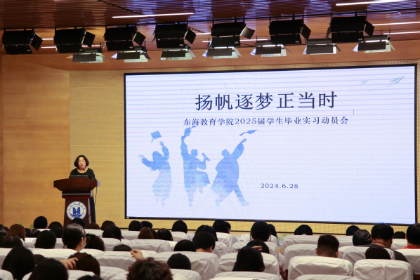 为引导学生做好毕业实习前的各项准备工作,扎实推进毕业实习工作,2024年6月28日,上海东海职业技术学院教育学院组织召开了2022级学生毕业实习动员会。教育学院领导、专业教师和辅导员及全体学生参加了此次大会。本次会议由学院副院长余恩秀主持。