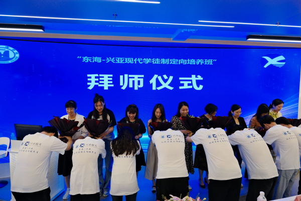 企业带教师傅代表和学生代表也分别上台发言,分享了对现代学徒制培养模式的认知、信心和展望。签约仪式后师徒全体上台结对,完成拜师仪式,定向班培养正式启动。