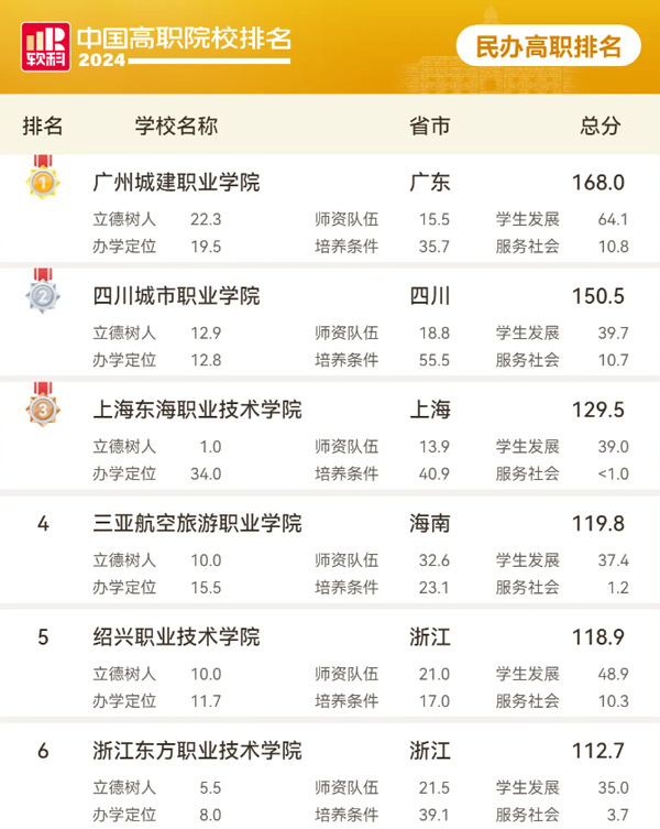 7月3日上午,高等教育评价专业机构软科正式发布“2024软科中国高职院校排名”,我校成功跻身三甲,在全国“民办高职”类院校排行榜中位列第三,在上海市民办高职院校中更是高居榜首!