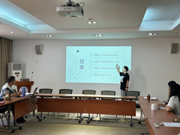 上午,马程、郑巨楷、张悦、李雅蓉、刘怡辰、姚可行、高丽等来自3个不同教研室的7位教师分别进行教学展示,涉及学科涵盖英语、高数和体育。每位老师按照要求进行了15分钟的说课和讲课,展示出扎实的专业功底,娴熟的讲课技能和较强的课堂掌控能力。在每位老师讲课展示结束后,吕谊明进行了一一点评,肯定了教师讲课过程中的特色创新之处,同时也指出不足和有待改进之处,并为老师们做了一场主题为“说课概述”的讲座,内容包括说课的逻辑、说课的主要内容、课程设计与建设、课程建设成效和课程特色5个方面。讲座深入浅出、内容丰富、逻辑分明,为教师们如何进行说课、如何说好课提供了有效帮助。