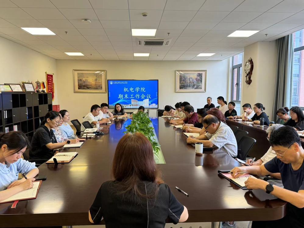 7月10日下午,机电学院在匠兴苑C303会议室召开2023-2024第二学期工作总结会议,会议由院长杨萍主持,学院全体教师参加会议。杨萍对本学期工作完成情况进行了全面的总结,同时将学校对二级学院的考核指标进行解析,并部署了市级高水平专业群申报、国家虚拟仿真实训基地建设、市级规划教材申报、招生就业跟踪、中高贯通专业申报、机电一体化技术专业认证等暑期重点工作。
