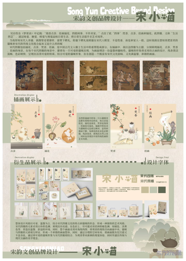 曹晓璐同学的《宋小喵文创品牌设计》和陈姝怡同学的《一针一线 画卷再现》均荣获特金奖。这两部作品以其深邃的文化内涵、创新的设计理念和精湛的工艺水平,赢得了评委和观众的一致好评。陆星烨同学的《解鸭梨解压馆视觉形象设计》、熊双艳同学的《徽味无穷》荣获银奖,其设计巧妙的创意构思与视觉艺术相结合,为观众带来全新的视觉体验。贾健平同学的作品《背对世界》、徐婉婷同学的《瑶台银阙—苗族银饰非遗展厅》、林思含同学的《予你 FOR YOU》、朱欣怡同学的《反走私海报》以及徐恒同学的《泡泡奇异集市品牌形象设计》等作品均荣获铜奖,这些作品或以其独特的视角和创意展现了巧品牌的深厚文化内涵、或以独特的视觉语言深刻挖掘了民族文化的精髓,为传统手工艺的传承与创新提供了新的思路。