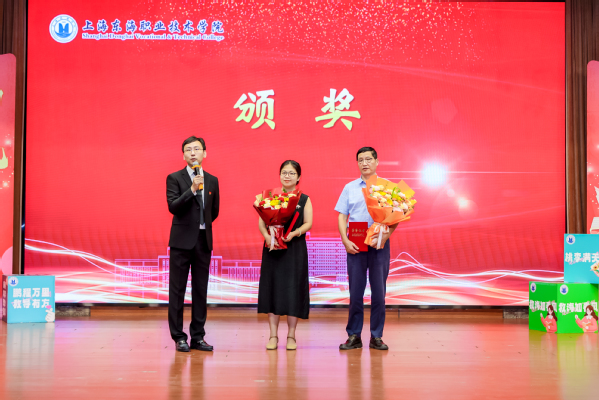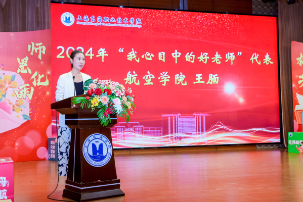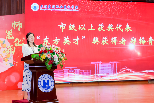 2024年我心目中的好老师代表王腼、“东方英才”奖获得者郑梅青分别在大会上发言。