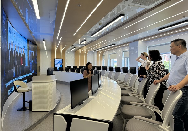座谈会后,访问团一行参观考察了学校食堂、学生宿舍和经管学院实训中心、电子商务教室,航空学院A320动态模拟舱、舱门训练、航空进出港、A320静态模拟舱实训室,机电学院数控、机电、工业机器人实训室,护理学院模拟老年实训室、模拟婴儿沐浴室、护士站及模拟病房实训室,艺术学院教学/实训场所、传媒学院教学/实训场所,对我校现代化办学条件和产教融合育人模式给予高度评价。副校长严玉康、护理学院院长张美琴、传媒学院院长左田田、总务处处长刘强、保卫处处长张政军及相关学院专业负责人、国际交流处项目主管李箐等陪同考察。