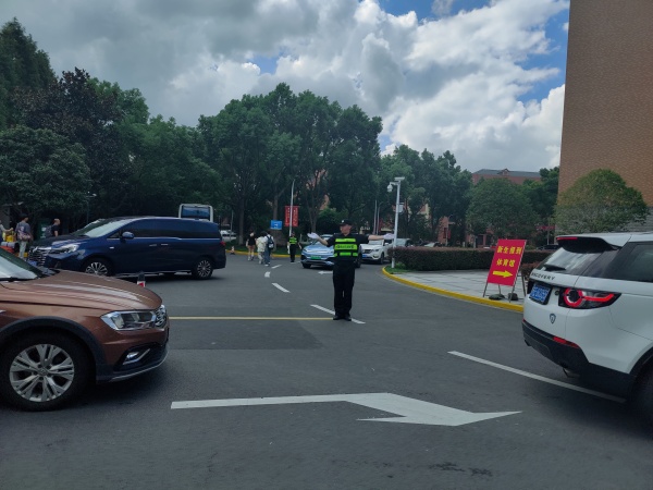针对新生报到期间车辆激增及校内道路的实际情况,后勤保卫处在校内所有的路口通过设置醒目的交通引导标识、科学调配安保力量进行现场指挥,并协调塘湾派出所开放周边马路停车位,有效缓解了校园内部交通压力,确保了校园道路的畅通无阻。