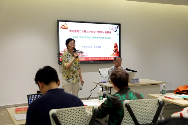 9月20日上午,华东理工大学杨苏教授应邀来校作学习贯彻****届三中全会精神辅导报告,党委书记曹蓉蓉主持报告会,会议在学校匠兴苑三楼会议室召开。学校党政领导,全体中层及以上干部参加学习会。