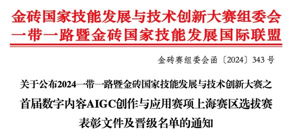 近日,在2024年一带一路暨金砖国家技能发展与技术创新大赛首届数字内容AIGC创作与应用赛项上海赛区选拔赛中,传媒学院选派的三位学生荣获一、二等奖和优秀奖,展现了学院在数字内容创作与应用领域的教学实践成果。