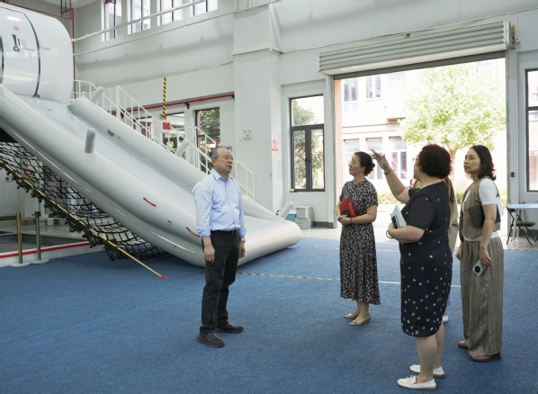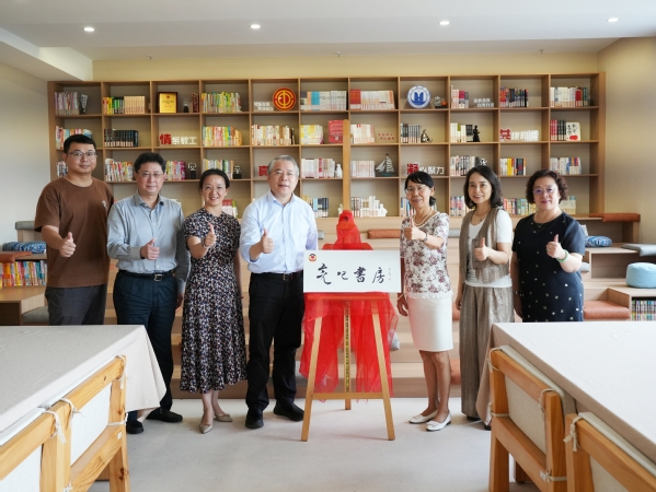 座谈会后,祝学军为教工之家“亮吧书房”进行授牌。祝学军一行还参观了东海学院校史馆及航空学院实训基地,深入了解东海学院发展及专业实训建设情况。