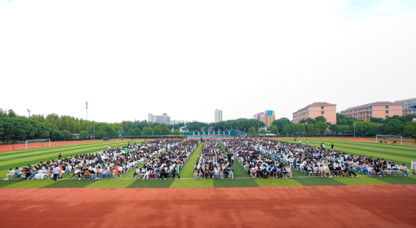 开学典礼上,3000余名新生同戴校徽,完成大学礼,成为东海人,开启人生的崭新篇章。