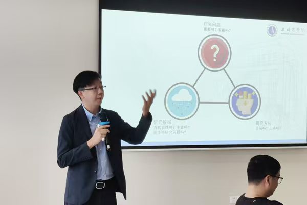 接着,三位专家从不同角度展开了精彩的主题讲解。许元镫博士分享了国家级课题申报的经验,从选题到申报材料准备,每一个细节都进行了深入剖析;顾晨博士则以自己入选“浦江人才计划”的经历,介绍了上海市人才项目申报的流程与技巧;王展博士围绕高水平论文的撰写与投稿,提供了许多实用的建议,特别是在选题、数据分析及研究方法等方面的指导让教师们受益匪浅。