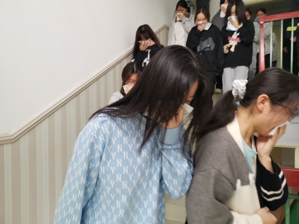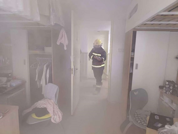 在整个演练过程中,6号宿舍楼的学生们积极配合,按照预定的疏散路线,迅速而有序地撤离到了安全区域。她们使用湿毛巾捂住口鼻,低姿前行,展现出了良好的消防安全意识和自我保护能力。