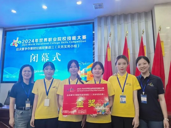 2024年10月29日至31日,世界职业院校技能大赛高职组财经商贸赛道三(关务实务组)总决赛在长沙航空职业技术学院举行。我校关务与外贸服务专业团队,由周毓蕙、黄诗迪、邵静媛、陈淑漫四位同学组成,凭借项目“融合·创新·合规·数智——一体化关务助推新质生产力发展”,在郑梅青领队及封竹一、高静两位指导教师的指导下,经过激烈比拼,展现了专业的技能水平,默契无间的团队协作能力,以及高效的英语交流能力。她们设计了一套紧跟行业变革的数智化通关服务方案,并在50分钟内高效完成所有竞赛环节,赢得评委一致认可,荣获金奖。这一荣誉不仅是对参赛同学努力的肯定,也彰显了我校关务与外贸服务专业的教育质量,更体现了我校在职业教育领域持续创新、追求卓越的精神。