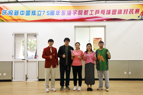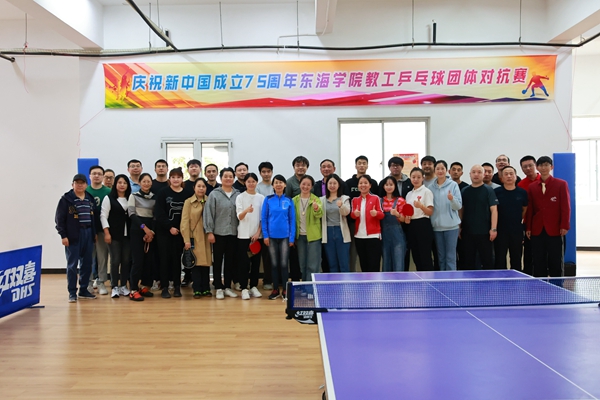 为进一步推进我校教职工健身运动的开展,提高教职工队伍健康水平,增进各单位教职工之间的交流,11月13日、14日,由校工会主办,基础部体育组、教工乒乓球协会承办的“庆祝新中国成立75周年东海学院教工乒乓球团体对抗赛”在体育馆一楼隆重举行。