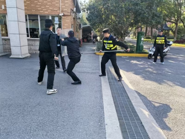 实战演练环节更是紧张刺激,模拟了多种可能发生的暴力冲突场景,如不法分子闯入校园企图行凶、持械攻击师生、醉酒滋事等。面对突如其来的紧急情况,安保人员迅速启动应急预案,按照既定战术分组协作,迅速实施包围、控制、制服等动作。整个演练过程中,各小组反应迅速、处置果断,展现出良好的专业素养和团队协作精神,成功将“暴徒”制服,有效保障了校园安全。