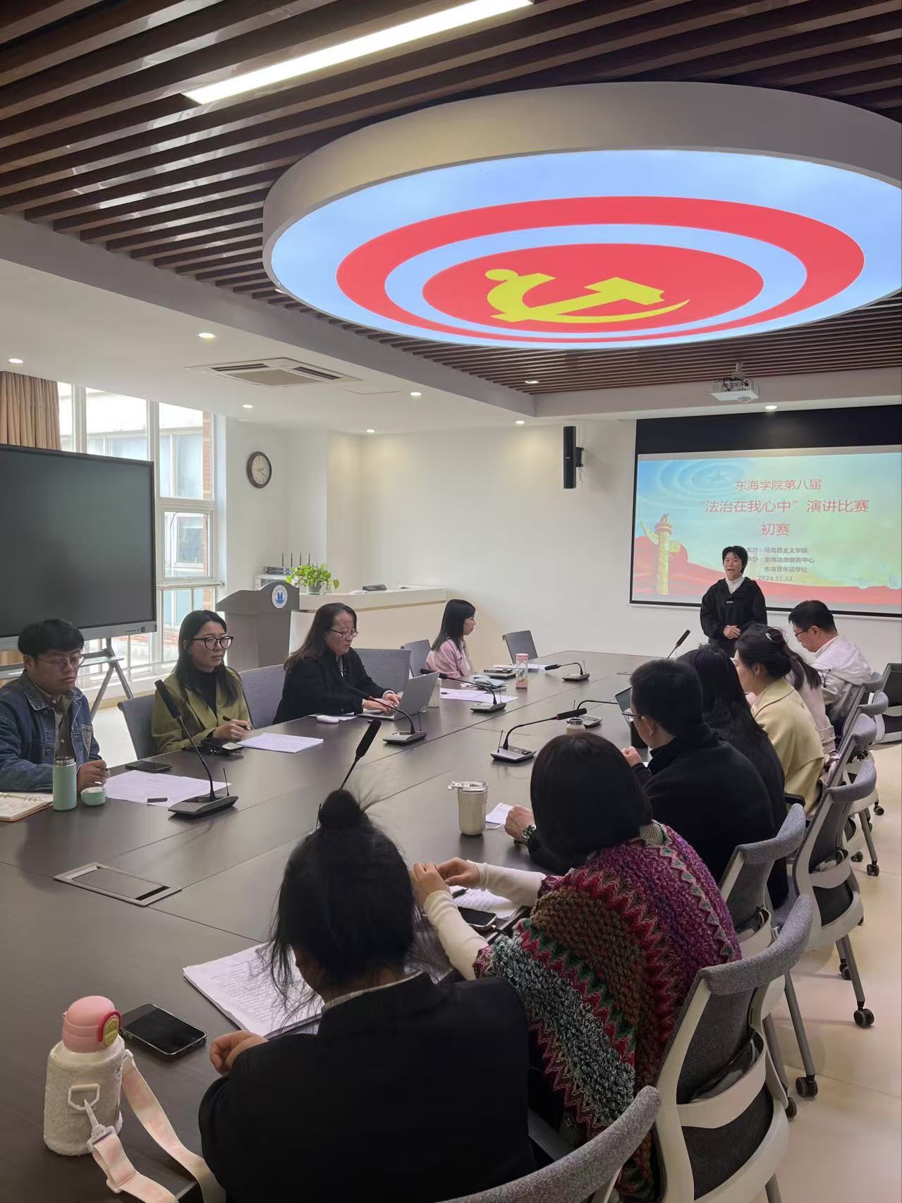 在第11个国家宪法日来临之际,由马克思主义学院主办、东海法律服务中心、青年法学社承办的“东海学院第八届‘法治在我心中’演讲比赛”初赛在马克思主义学院会议室举行。