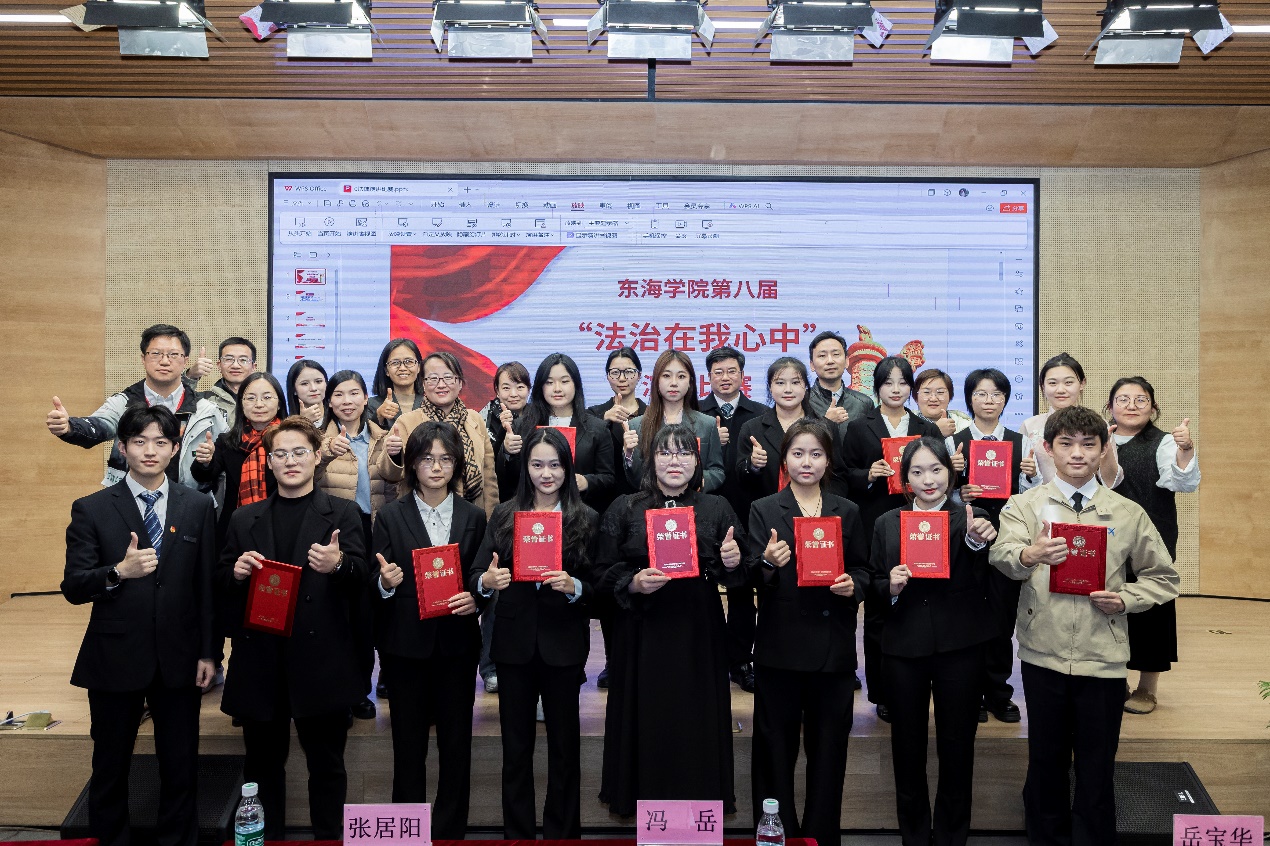 11月27日晚,由马克思主义学院主办、东海法律服务中心和青年法学社承办的我校第八届“法治在我心中”演讲比赛决赛在匠兴苑报告厅精彩上演,来自各院系的优秀选手齐聚一堂,以激昂之声传递法治力量,用青春视角解读法律要义,为全校师生呈现了一场兼具思想深度与感染力的法治盛宴,赛场内气氛热烈,掌声雷动。