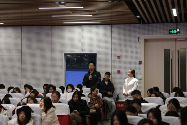 在讲座的后半部分,Yuliya外教结合语言学理论,讲解了语言在跨文化交流中的多重功能,特别是在社交场合中的应用技巧,如保持个人空间和避免讨论私人话题等。她还介绍了提高跨文化意识的方法,鼓励学生通过不同的社交媒体来提高跨文化理解力。互动环节中,学生们踊跃提问,积极与Yuliya外教就跨文化沟通、文化差异及英语学习等话题展开深入交流。