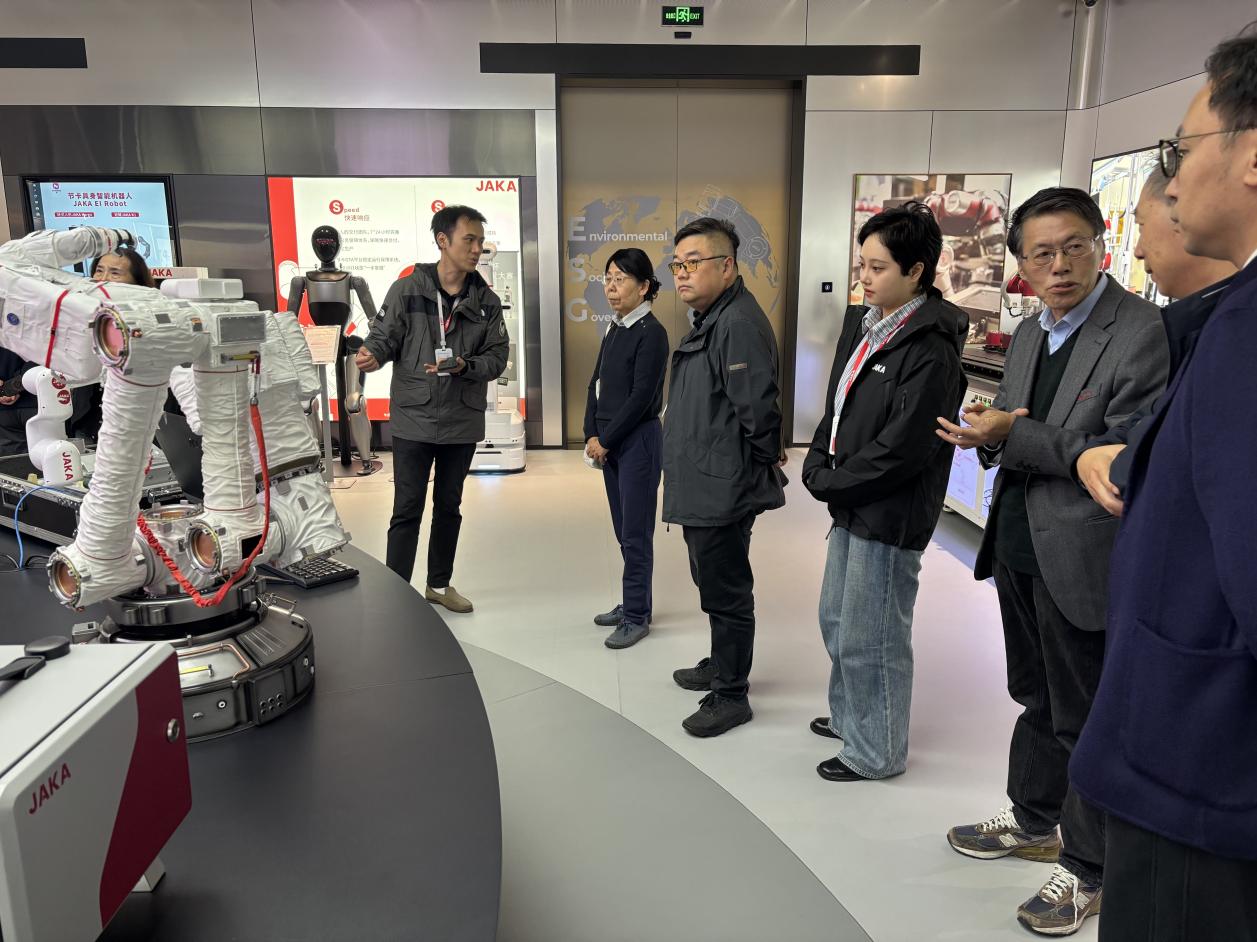 在节卡机器人联合创始人言勇华和副总裁杨卓陪同下,东海学院调研组参观了节卡机器人上海基地产品展厅,并听取企业方对JAKA协作机器人研发、智能制造场景应用及教育生态构建等领域前沿成果的系统介绍;通过近距离观察中试车间的创新技术演示,调研组成员对节卡机器人在机器人领域的核心技术突破及产业化能力有了更直观的认识,为后续合作方向提供了实践参考。