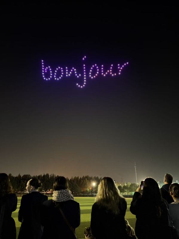 结业典礼结束后,全体法国师生兴致勃勃地观摩了东海传媒学院无人机表演,校长助理张居阳、传媒学院院长左田田、书记胡雪等陪同观摩。(通讯员 孟昭上)