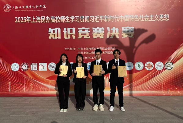 11月28日,由上海市民办教育综合党委指导、上海工商职业技术学院主办的"学用新思想 建功新时代"2025年上海民办高校师生学习贯彻习近平新时代中国特色社会主义思想知识竞赛圆满落幕。上海东海职业技术学院代表队在本次竞赛中荣获三等奖,展现了我校师生扎实的理论功底和昂扬的精神风貌。