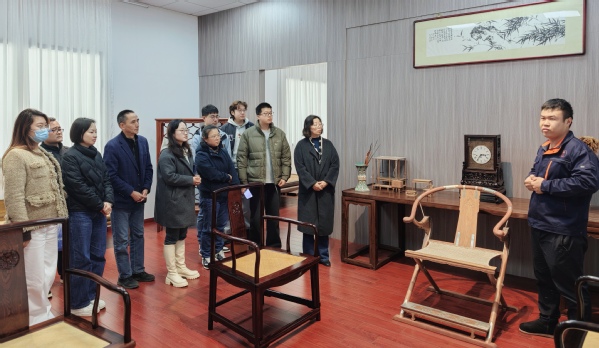 党员们首先参观崇木堂。此处是上海工匠、闵行区非遗项目“古旧木器修缮技艺”代表性传承人袁金祥大师的创新工作室。在弥漫着木香与陈列着精美器物的室内,大家聆听了袁大师半生坚守、与木为伴的初心故事。党员们近距离观赏了其精心复刻的明式家具珍品,从榫卯结构的精巧、木纹色泽的温润中,深刻领悟到“精益求精、执着坚守”的工匠精神所蕴含的“大美之道”。