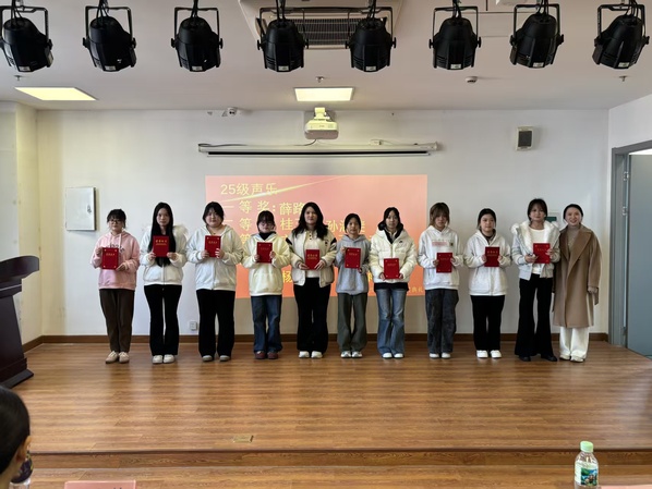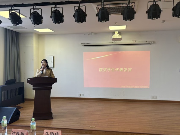 为全面总结2025年教育学院技能节系列赛事的成果与经验,2025年12月5日中午,教育学院技能节总结表彰大会在匠兴苑A501举行。上海东海职业技术学院教务处副处长郑梅青、校督导室主任吕谊明、教育学院院长许铁梅、副院长牛晓伟、教育学院党总支书记马祥龙、副书记覃家宁及教师代表和全体获奖学生共同参会。