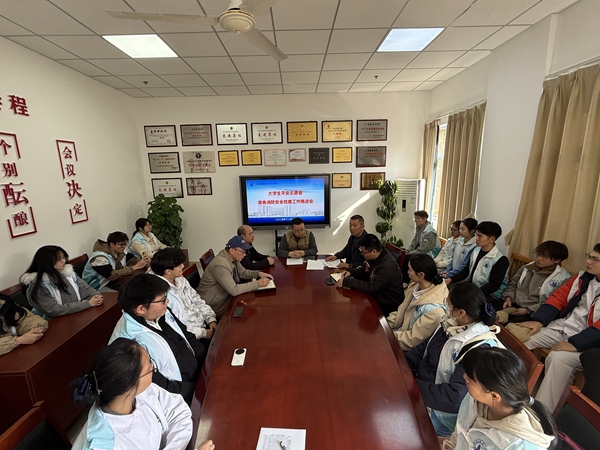 2025年12月8日中午,学校后勤保卫处在东海源南楼201会议室组织召开大学生平安志愿者宿舍消防安全检查工作推进会。全面部署并动员开展学生宿舍消防安全隐患排查工作,进一步筑牢校园消防安全防线。后勤保卫处处长黄海、副处长张政军、刘强,保卫处邓友君、张晨昕及部分大学生平安志愿者代表参加会议。