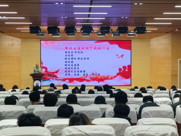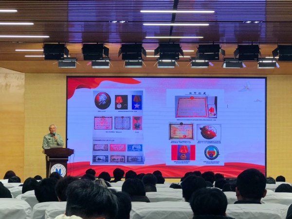 为深入学习贯彻党的二十届四中全会精神,引导全校师生深刻领会中国共产党人精神谱系的丰富内涵和时代价值,激发师生们的爱国热情和奋斗精神。我校特邀援越抗美老战士、高级工程师王万康作专题讲座,他以亲身经历为师生们带来了一堂生动深刻的爱国主义教育课。校党委副书记王玉、武装部部长岳宝华及教师代表,中级党校学员和预征预储班学员等近300人参加活动。