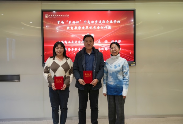 在人才培养情况通报环节,教务处处长张居阳作专题报告,从贯通专业布局优化、校企课程共建、学生技能竞赛、毕业生就业质量等方面通报了年度数据。大会还举行了首届“东海杯”中高职贯通教育教学改革优秀案例评选颁奖仪式,校长贺瑛、副校长郁萍、校长助理张居阳分别为一等奖、二等奖、三等奖获奖团队代表颁奖。