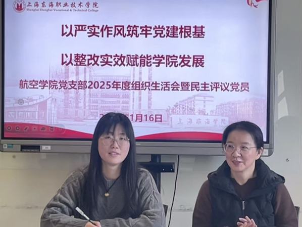 为深入学习贯彻习近平新时代中国特色社会主义思想,全面落实党的二十届四中全会精神,推进作风建设常态化长效化,1月16日,航空学院党支部召开2025年度组织生活会暨民主评议党员大会。副校长郁萍出席会议并指导工作,学院院长周孟华、党支部书记葛徐艳及全体党员教师参加会议,会议由葛徐艳主持。