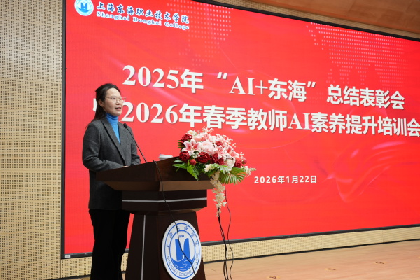 1月22日上午,2025年“AI+东海”总结表彰会暨2026年春季教师AI素养提升培训会在匠兴苑学术报告厅召开。理事长、企业嘉宾、校“AI+教育教学”推进工作领导小组成员、校教学工作委员会委员、东海AI专员、专职教师共180余人出席会议,会议由教务处副处长郑梅青主持。