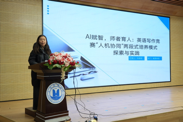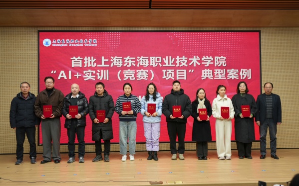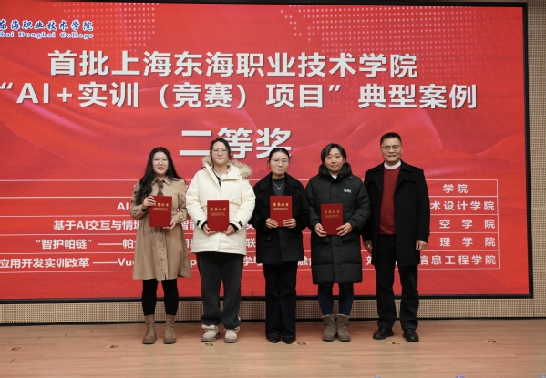 在首批上海东海职业技术学院“AI+实训(竞赛)项目”典型案例颁奖仪式上,校“AI+教育教学”推进工作领导小组为获奖者颁发了奖状。获得一等奖的李莎和牛晓伟两位老师分别作案例分享。