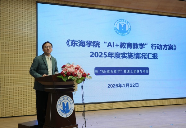 会上,校长助理张居阳对照《东海学院“AI+教育教学”行动方案》十大任务,全面总结了2025年度实施情况。2025年,学校共计培育建设4个示范性“AI+专业(群)”、25门“AI+”课程、12本“AI+”教材,遴选出22个“AI+实训(竞赛)项目”典型案例,有4个案例被推荐至《职业教育人工智能应用发展报告》,立项10个人工智能专题教研课题,成效显著。