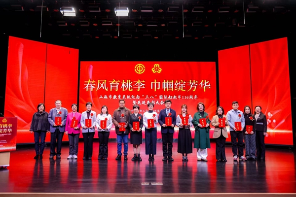 3月3日下午,由上海市教卫工作党委、上海市妇女联合会指导,上海市教育工会、上海市教育系统妇工委主办的“春风育桃李 巾帼绽芳华”——上海市教育系统纪念“三八国际妇女节”第116周年表彰大会在上海教育会堂举行。经我校推荐申报,上海市教育系统妇工委、教育工会女工委评审公示,我校艺术设计学院教师李莎、王彪夫妇荣获上海市教育系统第十五届比翼双飞模范佳侣,航空学院副院长张敏、陈昊鹏夫妇荣获上海市教育系统第四届最美家庭提名奖。